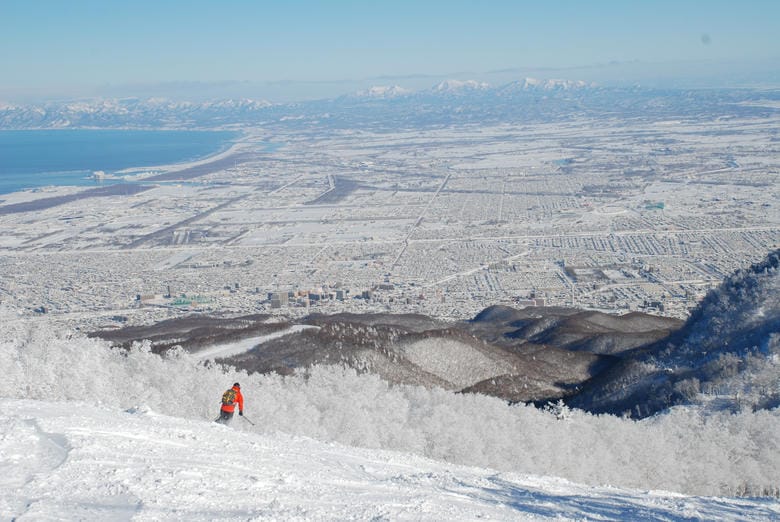 札幌中心部から車で約40分とアクセス抜群。山頂からは札幌市街と石狩湾を一望できる絶景が広がります。かつての冬季オリンピック会場でもあり、聖火台や名物急斜面「北かべ」など、歴史とスリルを感じられるコースも魅力です。