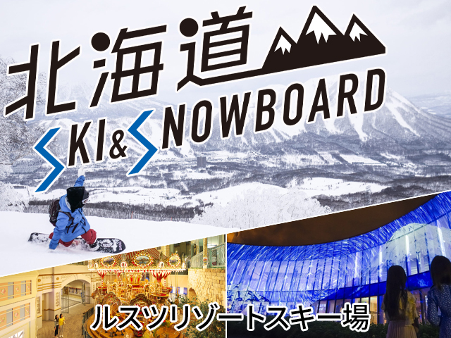 単独のスキー場としては北海道No.1の規模。3つの山に全37コースがあるビッグゲレンデで、中級者が気持ちよく滑れる幅広ロングコースが充実しています。アフタースキーは、ホテル内のメリーゴーランドやプロジェクションマッピング、室内造波プール、美肌の湯「ルスツ温泉」でリフレッシュを。