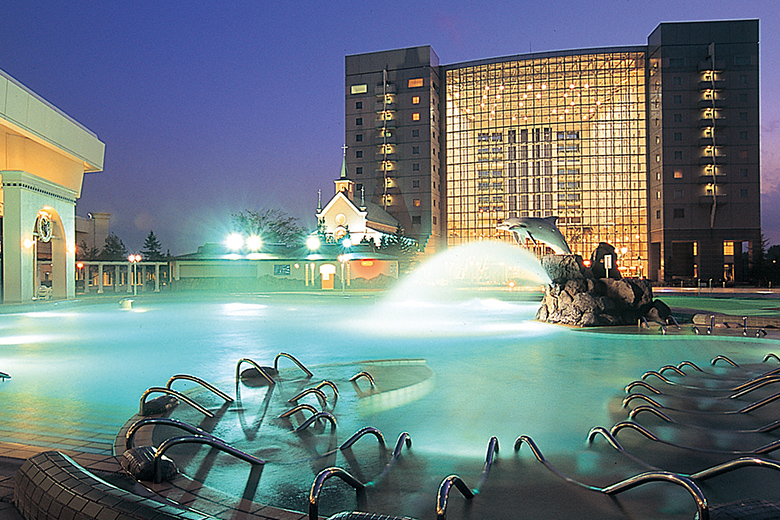 札幌中心部から無料送迎バスで約40分。広大な敷地に温水プールと温泉を備えた「家族で遊べるリゾート」です。ウォータースライダーで遊んだ後は、シャトレーゼならではのスイーツバイキングを堪能。ホテル内で一日中楽しめるため、移動が大変な子連れ旅に最適。