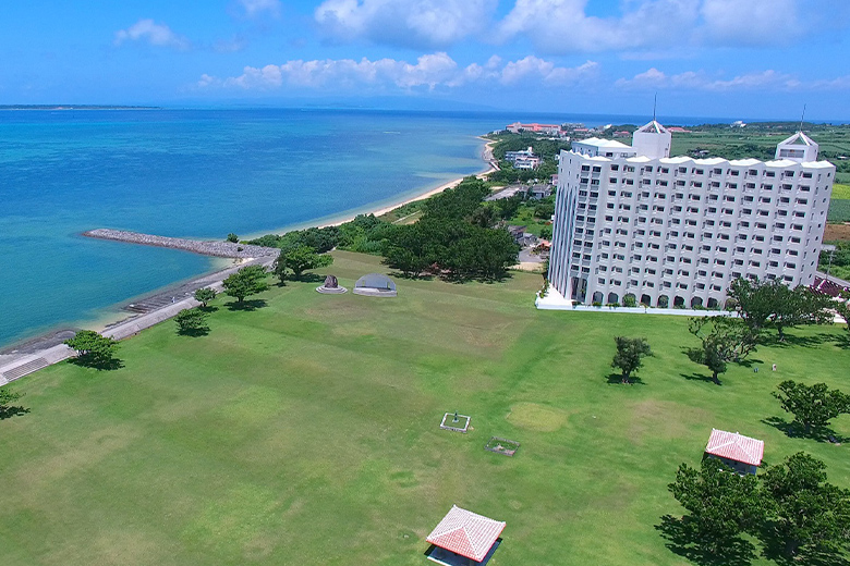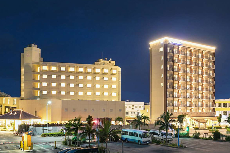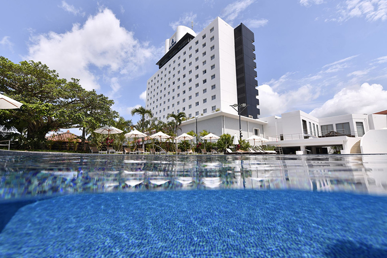 市街地の高台に位置し、観光の拠点に便利。屋外プールにはウォータースライダーがあり、子供に大人気です。超軟水を使った大浴場「にぃにぃの湯」にはベビーバスチェアも完備。毎晩ロビーで開催される「島唄ライブ」は、家族みんなで沖縄文化に触れられる楽しいひとときです。