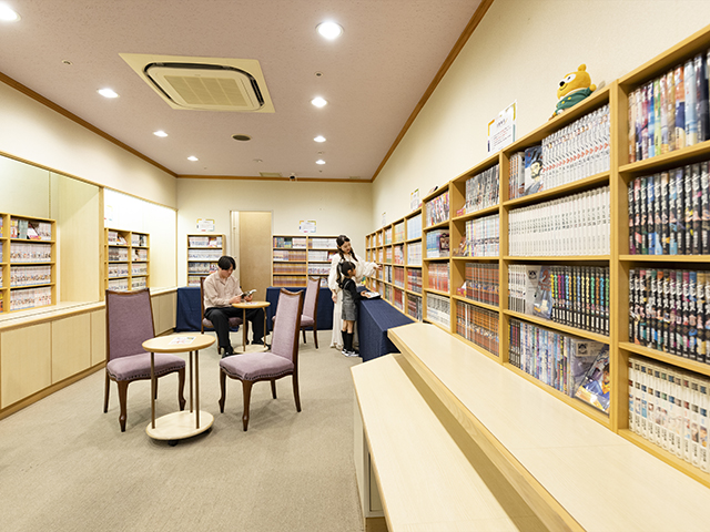 3,000冊のコミックコーナーはご宿泊者の方は無料で読み放題、ラウンジや客室にてお読みいただけます。今話題の漫画から、昔懐かしの漫画までバリエーション豊富に取り揃えています。