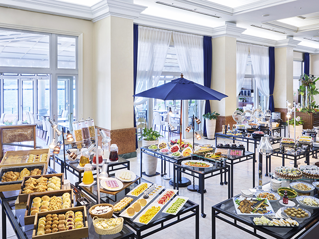 海と空のパノラマを眺めながら朝を爽やかにお過ごしいただける60種類以上のバラエティに富んだ朝食バイキング。長崎の食材はもちろん郷土料理をはじめ、長崎県ブランド卵の栄養豊富な太陽卵で作った『太陽卵のオムレツ』や自慢の長崎和牛で作った『長崎和牛のすき焼き』『長崎和牛朝カリー』など、ここでしか味わえない長崎の味覚をぜひご賞味ください。