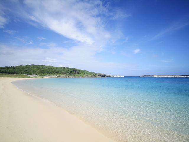 島の北部に位置するビーチ、ナンタ浜。その水の透明度はとても高く、美しい砂浜とも相まって素晴らしい景観を作り上げています。しかも、ナンタ浜から見る海は、グラデーションも楽しめます。波打ち際は浅いため水の透明度が際立っていますが、少し沖の方に目をやるとかなり深い青い色となっていることがわかるでしょう。ただその分、浜を離れると水中は流れがかなり速く危険な場所ということでもよく知られています。できるだけ浜辺付近で美しい景色を楽しむようにしてくださいね。