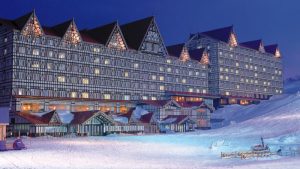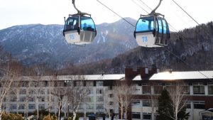 湯田中渋温泉郷の近く標高1,930mのパウダースノーエリア竜王スキーパーク。山頂は北アルプスまで見渡すことができる絶景スポットです。ホテル竜王ヴィレッヂは、そのスキーパークから徒歩1分の抜群の立地となっています。