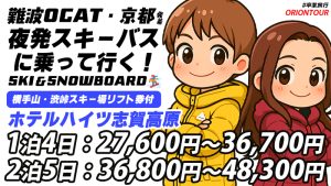【難波OCAT・京都発】夜行スキーバスで行く志賀高原(横手山・渋峠)で極上パウダー!夜行バスで行く快適スキー・スノボ旅