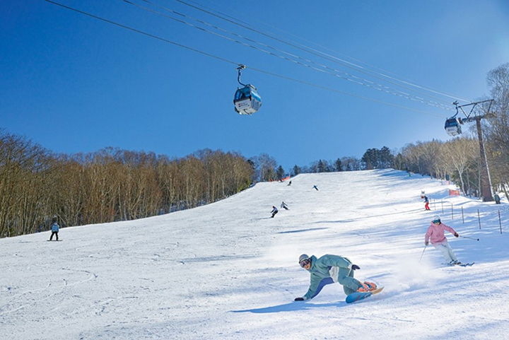 都心から約 2 時間半でアクセス可能、ゴンドラを含む6基の搬器で最⾧滑走距離 3,000m、計 12 のコースを有する首都圏最大級のスノーリゾート。最新の機材や多彩なウェアが揃ったレンタルショップや、スノーエスカレータを完備したキッズパークから、スノーパークやダイナミックな急斜面まで、初心者から上級者まで満足いただける設備を備えています。