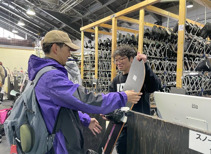 今回、自身のギアを持参しましたが、「レンタル」にも驚きがありました。 一昔前のレンタルといえば、「使い古された板」「ダサいウェア」が相場でしたが、川場のレンタルコーナーは全く別物です。