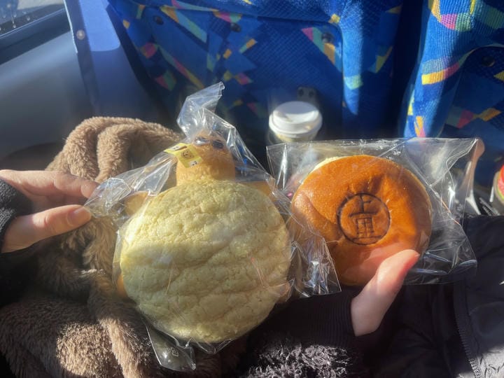今回のツアーでは、行きと帰りに必ず「上里SA(サービスエリア)」での休憩がありました。 マイカーだと「早く着きたい」という焦りで素通りしがちですが、バスなら強制的に休憩タイム。ここで朝ごはんのパンを買ったり、帰りに群馬名物の「焼きまんじゅう」やお土産をゆっくり選んだり。 「あ、小腹すいたな」というタイミングで立ち寄ってくれるので、ゲレンデ到着前にしっかりエネルギーチャージができました。