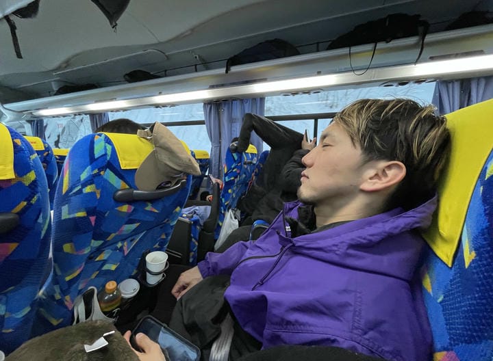 夕方までたっぷり滑り、ラウンジで着替えを済ませてバスへ。 心地よい疲れに包まれながら、シートに体を預けた瞬間に眠りに落ちました。
