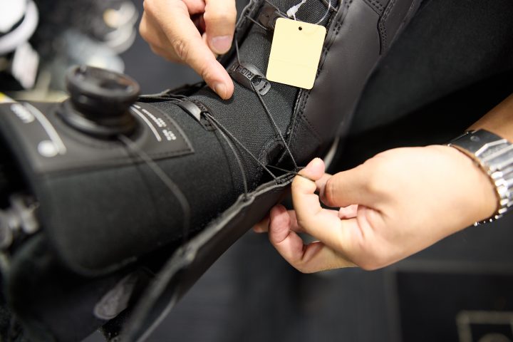 例えば足首だけ締めて、他の部分は緩くするとか、もう全部きつく締めちゃうのもできるし、ボアは楽な分細かな調節がしにくかったりするんですよ。最近だとボアが当たり前になってきて、何足も履いてる人だとボアの方がちゃんと締め分けができるじゃんって言って紐に戻ってくるのもありますし。あとは見た目がやっぱ紐の方がちょっとかっこいいと思ってる人も多いです。
