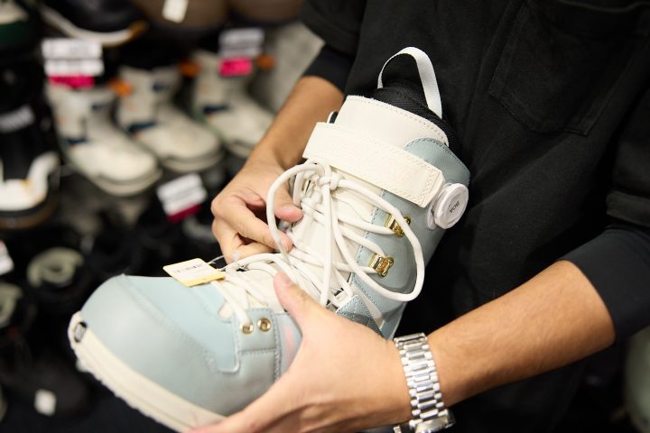 板とかバインディングは白が売れてるんですけど、ブーツは結構黒だったりアースカラーが売れています。ウェアとか板との兼ね合いもあってか全部白にしたくないって人は結構いますね。実際にブーツのラインナップも白はそんなに多くないんですよ。