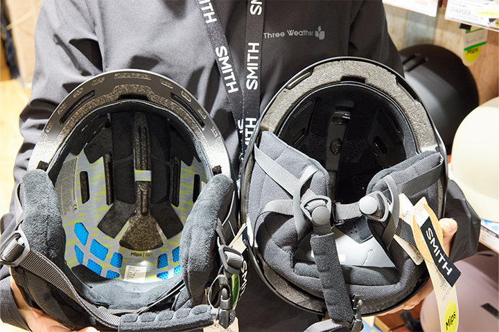 ヘルメットも最近軽量化が進んでいるので、ニットキャップを被っているかのような軽さになっているんですよ。また最近は「Mips(ミップス)」というものが増えており、いろいろな角度からヘルメットに衝撃が変わった時に、ヘルメット内部の型が動くことで脳への衝撃をより緩和してくれる機能があるものも登場しています。 初心者におすすめなのは「OAKLEY」の「Mips」が備わっているもので、値段も15,000円ほどで購入できます。後ろのダイヤルを回すことで頭にフィットするような仕様にもなっているので、こういったコスパのよいものを選ぶといいのではないでしょうか。