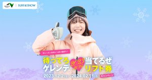 『待ってろゲレンデ、当てるぜリフト券キャンペーン』「NEXCO東日本」と「SURF&SNOW」が共同で12/2より開催国内最大級のスキー場情報サイト「SURF&SNOW(https://surfsnow.jp/)」を運営する株式会社インプレイ(本社:東京都新宿区、代表取締役:田口 直樹、以下 当社)は、スキー場の活性化を目的としたキャンペーン『待ってろゲ...