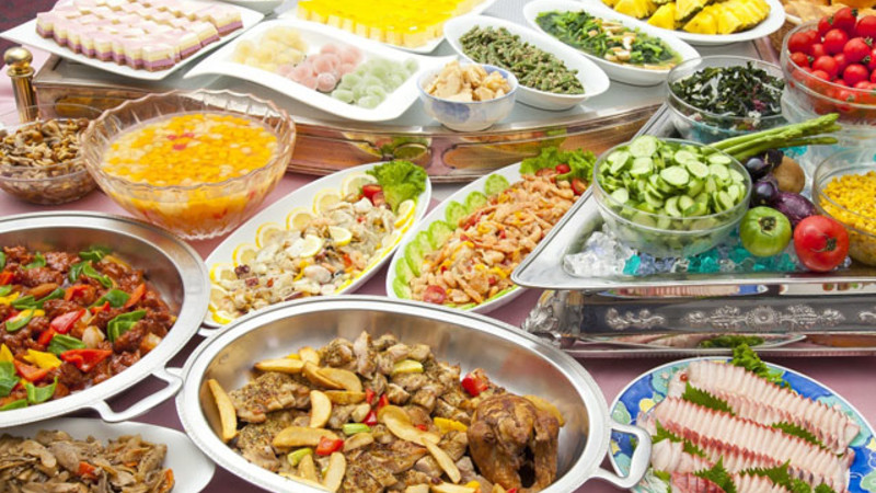 お食事は和洋中のバイキングスタイル。地元食材を使ったメニューをお腹いっぱい楽しめます。