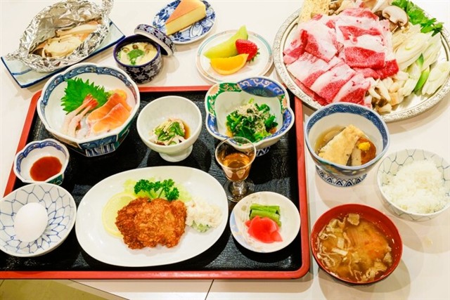 - 夕食は「日替わり肉料理付・和洋セットメニュー」(鉄板焼き・すき焼きなど)