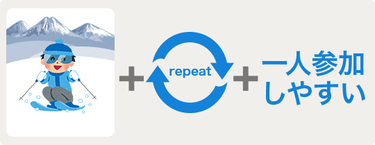 朝発バス日帰りは、近郊のスキー場にツアーなので、リピートしやすく便利です!おひとり様のご参加率も高いです!