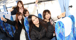 バスだから、お昼の時にお酒も飲めますよ! -