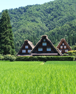 1995年 文化遺産に登録され、日本で6件目の世界遺産。「合掌造り」とは、「小屋内を積極的に利用するために、叉首構造の切妻造り屋根とした茅葺きの家屋」のことで、日本の他の地域にはみられない、白川郷と五箇山地方のみに存在する大変特色のある民家の形式。