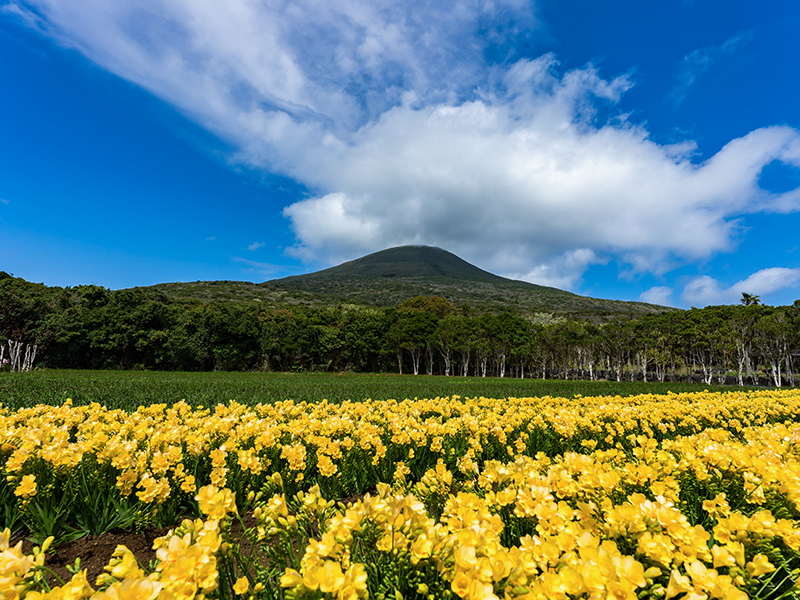 東京から南へ約290km。八丈島(はちじょうじま)は、伊豆諸島の中でも特に温暖な気候と豊かな自然に恵まれた島。青い海と緑あふれる山々、そして独特の火山地形が織りなす絶景が待っています。