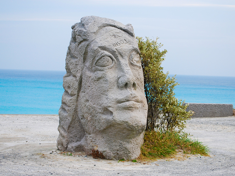 エメラルドブルーの海に囲まれた羽伏浦海岸や、島の天然石「コーガ石」で作られたモダンなモヤイ像、無料で楽しめる露天温泉など、のんびりした時間が流れる島ならではの体験が満載。