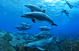 島内で最も人気のあるアクティビティは、シュノーケリングやダイビングでの美しい珊瑚礁の観察や、ホエールウォッチング。また、小笠原特有の動植物、たとえば絶滅危惧種の動物と出会える貴重な体験もできます。