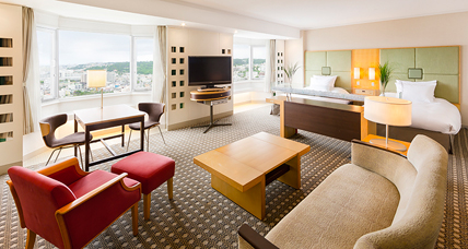 30平米、最大4名様までご宿泊いただけるゆとりのある客室です。 客室に完備された無線LAN(WiFi)/有線LAN形式によるインターネットはビジネスや観光でのご利用に最適。