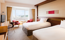 「芭蕉布」の自然色をイメージした落ち着いた客室と「首里城」に使われたべんがら赤をイメージカラーに上質感ある客室。那覇市街や東シナ海が見渡せる眺望が魅力の客室です。夜は素晴らしい夜景をご堪能ください。